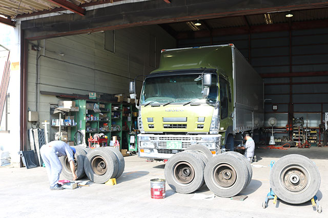 さらに、グループ会社に整備工場を準備することで、年数を重ねたトラックも安全な状態を保ち運転することで安全面の強化を行っております。